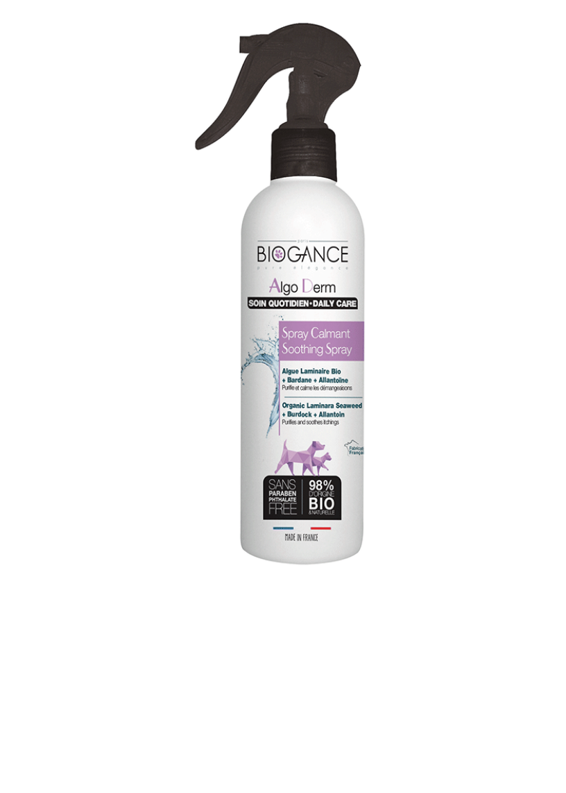 الوصف بخاخ ألغو ديرم المهدئ للكلاب والقطط مصاغ من طحالب اللاميناريا وخلاصة الأرقطيون والآلانتوين.
