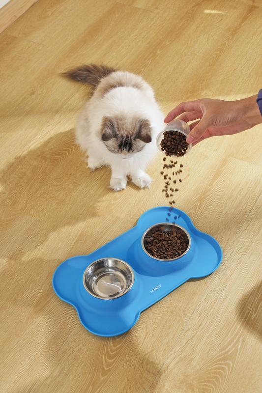 DUET stainless steel bowls with silicone mat Bone shape bowl with silicone matAnti-slip bottom, Dishwasher-safe