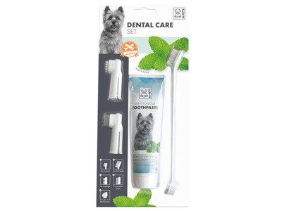 Description: Just like us, dogs need good oral hygiene to protect their teeth and prevent bad breath. This dental care set provides just that, with a mint flavor toothpaste and a double-ended toothbrush which is designed for a quick and easy cleaning.